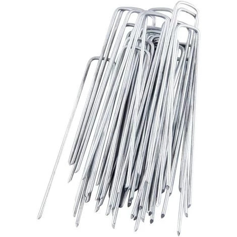 Convient pour la fixation de tissus anti-mauvaises herbes, de tissus de sol, galement pour la fixation de tuyaux et de cbles dans le sol.