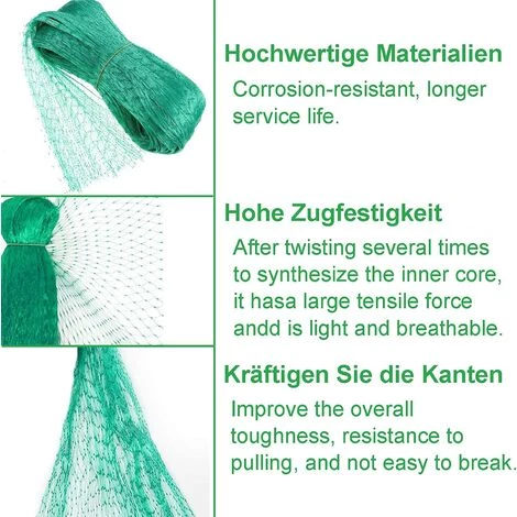 FACILE À UTILISER: La maille uniforme assure un accès et un retrait faciles. Peut être facilement attaché aux arbres fruitiers ou aux arbustes et attaché au fond. Peut être posé sur de grands parterres de fleurs ou sur des pelouses semées, par exemple avec des ancrages au sol.