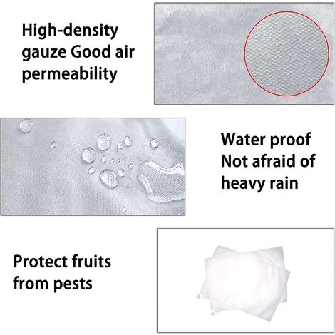 Tissu non tissé de haute qualité Le sac de protection des fruits est fabriqué en tissu non tissé de haute qualité, qui est doux, hermétique, imperméable, résistant aux intempéries, anti-exposition, solide et durable. une conception d’étanchéité à cordon, qui peut être rapidement scellée d’une simple traction.Avec ce sac de protection de raisin, vous pouvez observer la croissance du fruit à tout moment, ce qui est pratique à utiliser.Protection des fruits Le sac de protection des fruits peut empêcher les insectes, les oiseaux, le vent, la pluie, le soleil brûlant et d’autres substances nocives des fruits nocifs, réduisant efficacement l’apparition de parasites et de maladies et assurant la croissance saine des fruits.Bonne respirabilitéCe sac de protection des fruits a une bonne respirabilité, peut transmettre la lumière et ventiler, donc que les plantes peuvent pleinement photosynthétiser et créer un bon environnement de croissance pour les fruits.Large utilisationLe sac de protection des fruits peut être utilisé pour protéger les raisins noirs, les raisins blancs, les citrons, les cerises, les tomates, les œufs lants, concombres et autres fruits, avec une forte praticabilité.Le sac protecteur de fruits de haute qualité est doux, résistant aux intempéries et hermétique, ce qui peut bien protéger vos fruits de travail.Le sac de protection des fruits est conçu avec un cordon de serrage, facile à utiliser, de sorte que vous peut observer la croissance des fruits à tout moment.Le sac de protection des fruits peut protéger efficacement vos fruits des dommages causés par les insectes, de la poussière, des intempéries et de l’exposition, fournir un environnement de croissance confortable pour vos fruits et assurer une croissance saine des fruits.Le sac de protection des fruits peut être utilisé pour protéger divers fruits, légumes et melons.Il a un large éventail d’utilisations et est très pratique.Informations sur le produit: Nom du produit: Sac de protection des fruits Matériau: tissu non tissé Couleur: blanc Taille: 29,5 * 19,3 cm Nombre de produits : 50 pièces