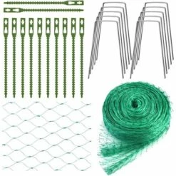 Le paquet contient 1 filet de jardin à mailles fines vertes, 10 clous de sol en forme de U (longueur 10 cm) et 12 serre-câbles verts (longueur 13 cm). Cet ensemble relativement complet est suffisant pour répondre à vos besoins