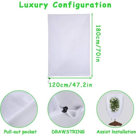 La housse de protection est fabriquée en tissu non tissé, résistant aux déchirures dues aux UV et translucide et durable, design à l’ouverture inférieure de la housse de protection des plantes.