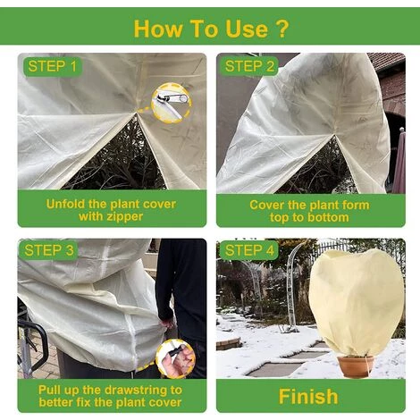 - Les couvercles de protection contre le gel des plantes peuvent protéger votre plante des éléments de forces tels que la neige, le gel, le vent, la poussière, le soleil, etc.