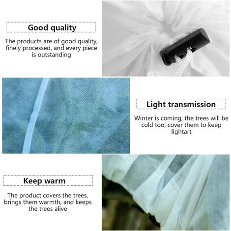[Matériau durable] Le sac pour plantes antigel est fabriqué en tissu non tissé de haute qualité, durable et respirant, l’air et l’humidité peuvent atteindre les plantes et peuvent être réutilisés à différentes saisons.[Conception avec cordon de serrage] La couverture résistante au gel de la plante est solide et généreuse, qui peut facilement s’adapter à la plante. Elle est serrée avec un cordon de serrage et le fond peut être fixé pour éviter le vent.[Couverture d’hiver] Protégez les plantes de la neige, de la grêle et du gel en hiver, et protégez les plantes des insectes et des oiseaux pendant la saison de croissance – pas besoin de les enlever tous les matins et de les remplacer tous les soirs.[Larges utilisations] Il est bénéfique pour la protection des plantes. Protégez vos légumes, arbres fruitiers, agrumes, arbustes, fleurs, plantes verticales, etc.