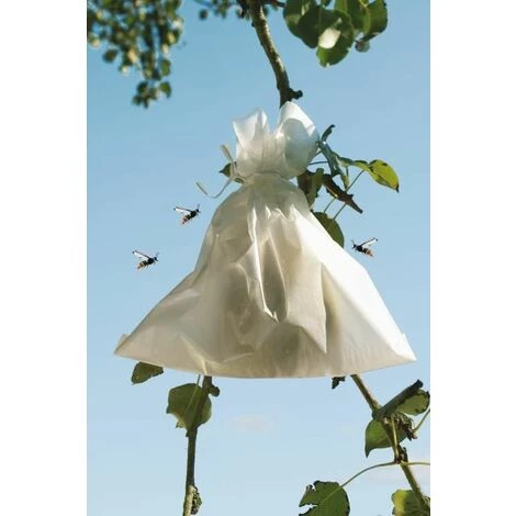 Housses microperforées en papier pour la protection individuelle des fruits contre les insectes. 50 housses avec liens. Dimensions: 17 x 22 cm. Couleur: Blanc