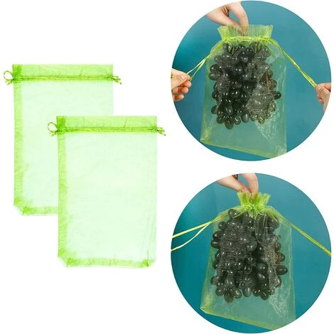 AIR – ET SOLEIL: Le sac de protection du raisin laisse aux raisins et à tous les autres fruits suffisamment d’espace pour se développer et assurer une maturation optimale. Le tissu d’organza finement tissé offre une protection suffisante et est en même temps perméable à l’air et au soleil.