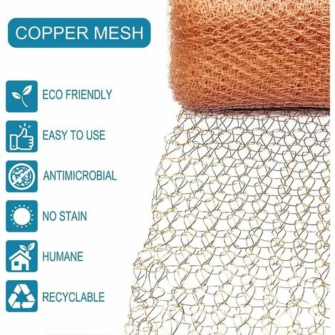 Haute qualit Notre bloqueur de maille est en cuivre pur de haute qualit, antirouille et rsistant aux hautes tempratures, ductile et lastique. il mesure environ 6 mtres / 20 pieds de long et 12,5 cm / 5 pouces de large, peut tre utilis pour bloquer des trous de toute forme et taille.
