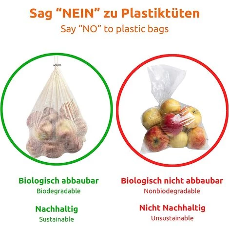 Respectueux de l’environnement : utilisez nos sacs de fruits et légumes zéro déchet sans plastique pour être respectueux de l’environnement – évitez les sacs en plastique inutiles lors de vos achats.