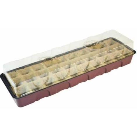Description détaillée du produit Serre avec 30 pots Dimensions: 54,5 x 16,5 x 11cm Contient: volet de ventilation Coloris: terracotta Matière: plastique recyclé Marque: Windhager